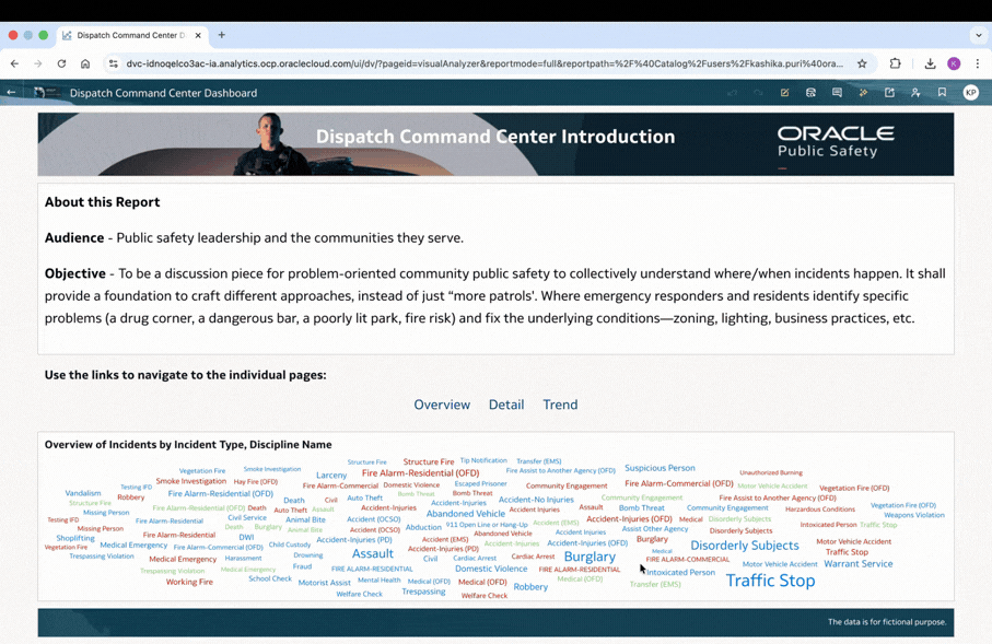I created a dummy dataset with the the help of Public safety Team within Oracle