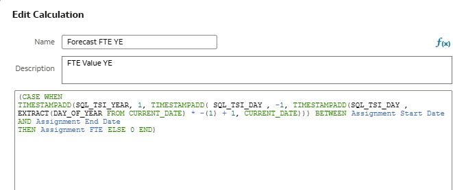So far, I have used the calculations mentioned below on the HCM – Workforce Core database (the forecast horizon is until the end of the current year). In the background, I am also filtering on Primary Flag = Y and Assignment Status Type Code = Active.