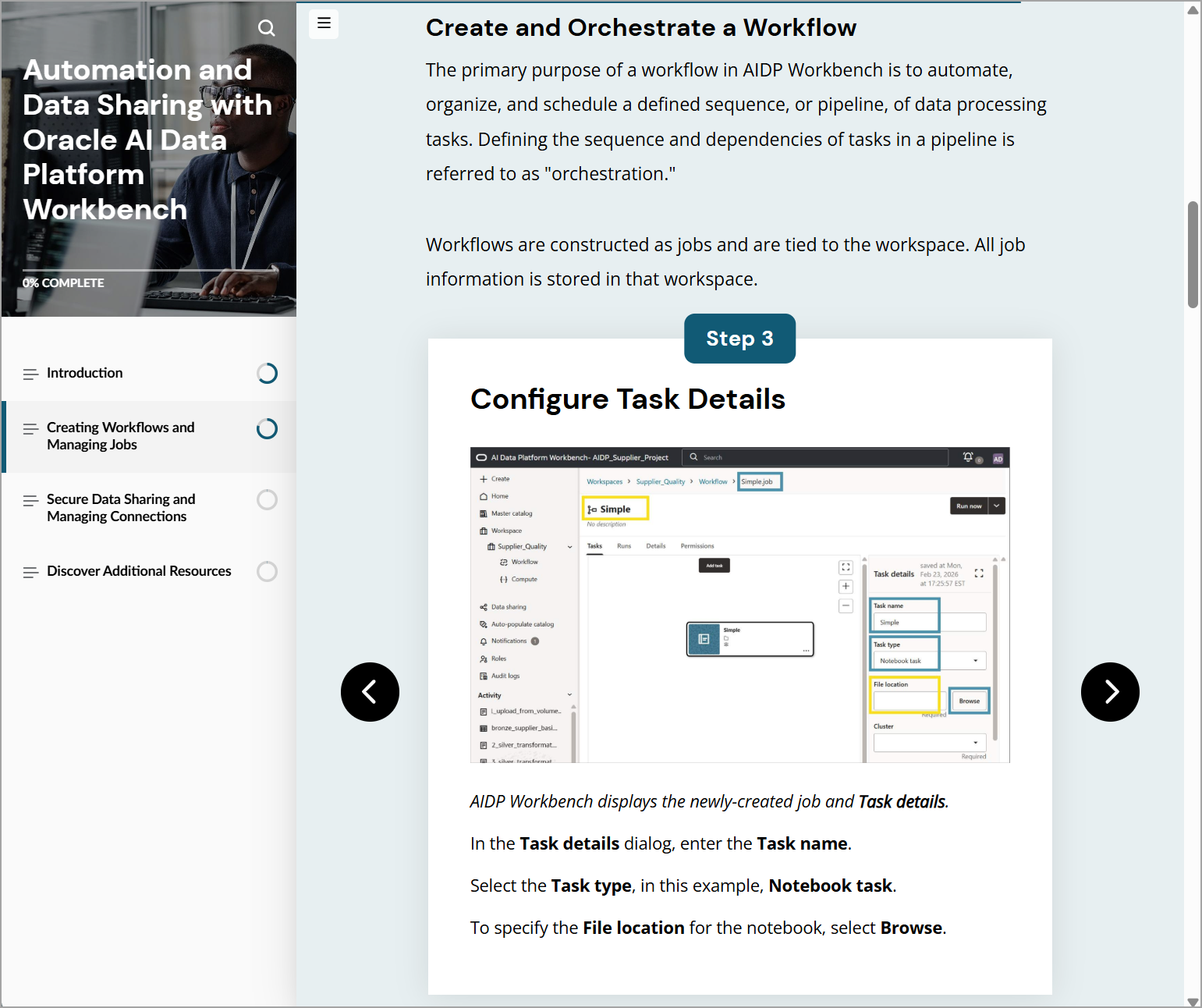 Select this link to access the course: Automation and Data Sharing with Oracle AI Data Platform Workbench.